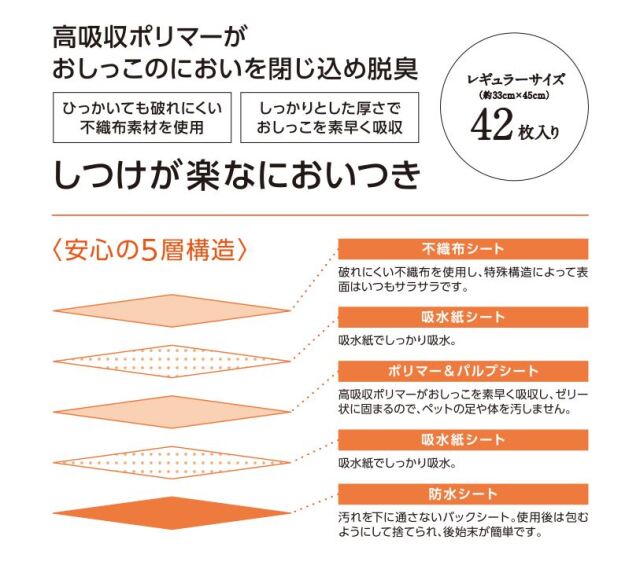 5層構造で安心の吸収力のペットシーツが誕生しました★誘引剤の香りでトイレのしつけをサポートします。
