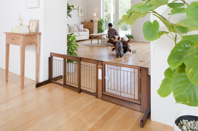 木製の優しい風合いを持った、ドア付き木製のインテリアゲート